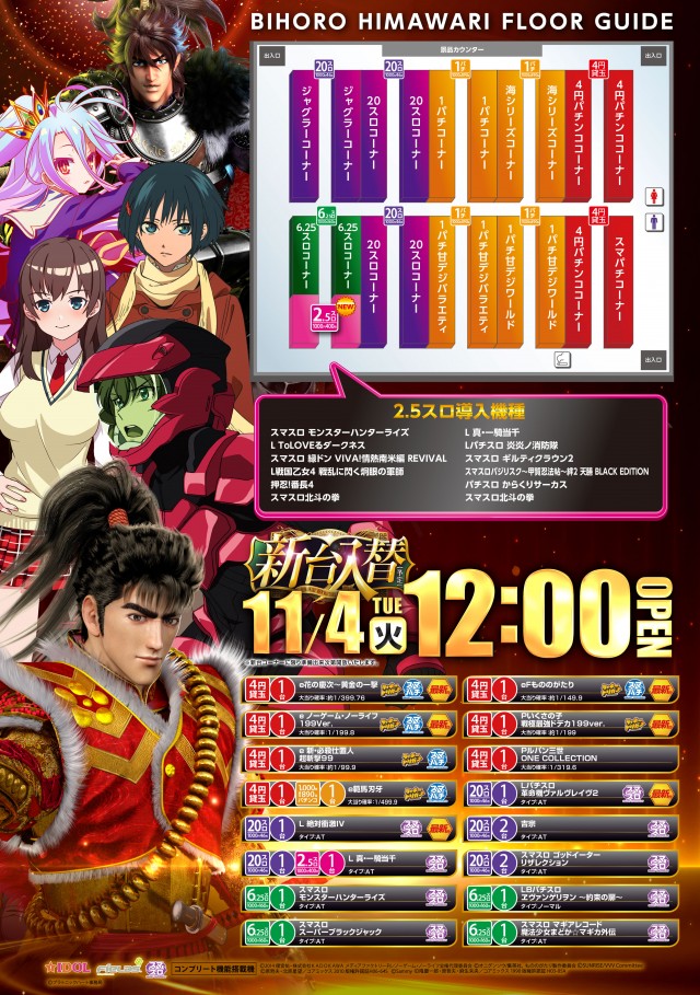 | 稼働台数 | パチンコ240台 / パチスロ144台 |