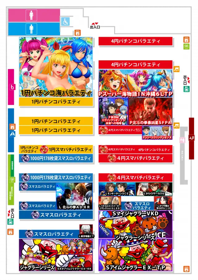 | 稼働台数 | パチンコ328台 / パチスロ280台 |