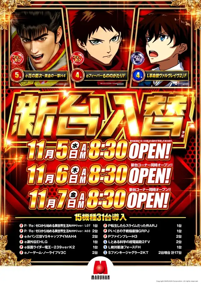 | 稼働台数 | パチンコ480台 / パチスロ287台 |