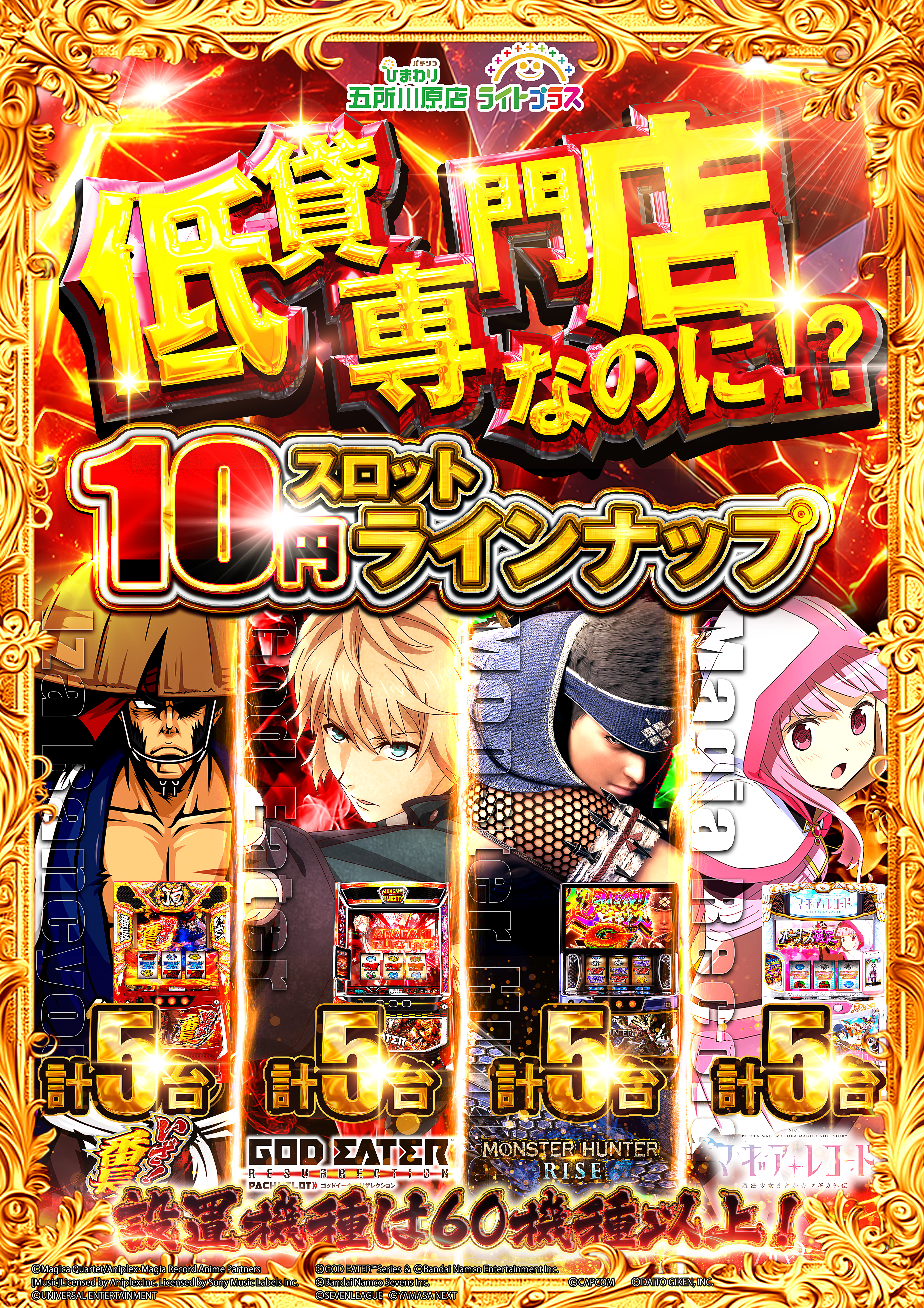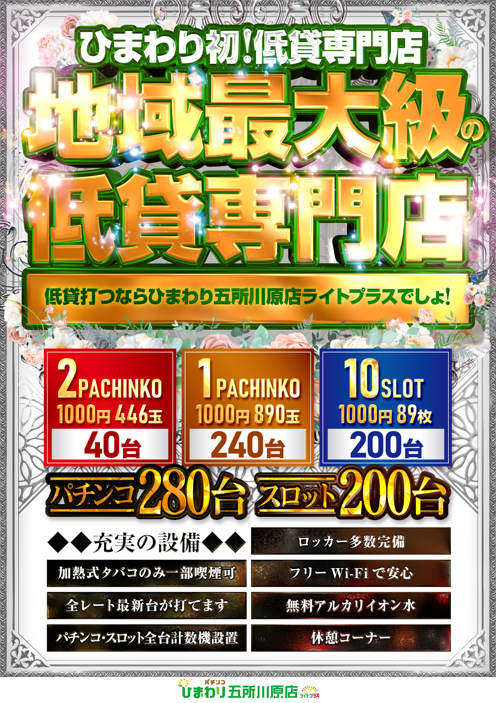 | 稼働台数 | パチンコ280台 / パチスロ200台 |