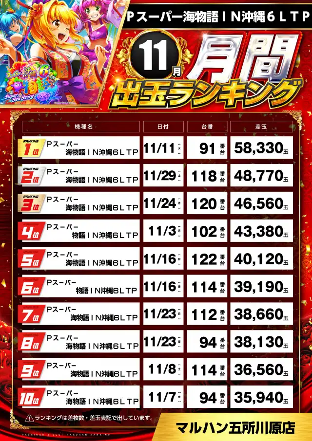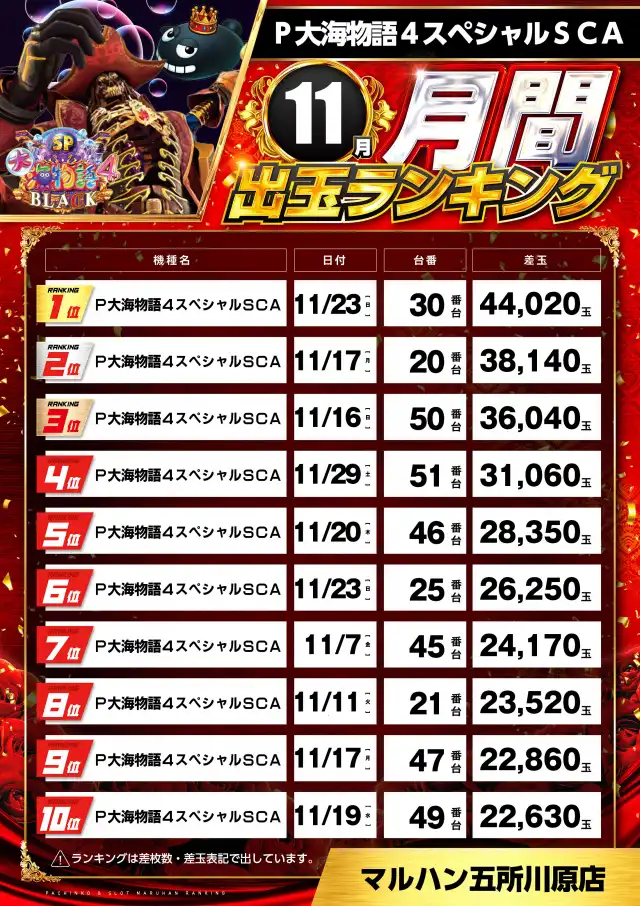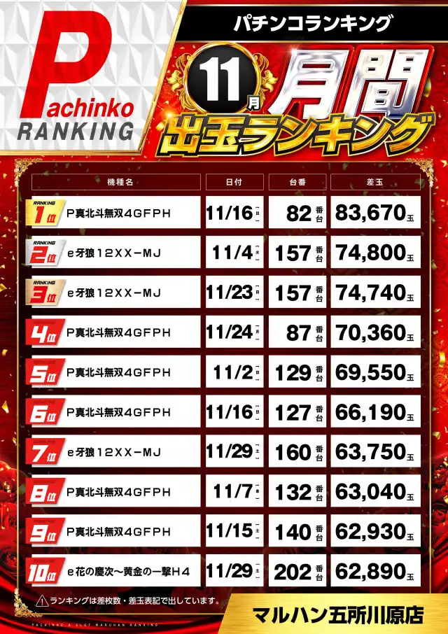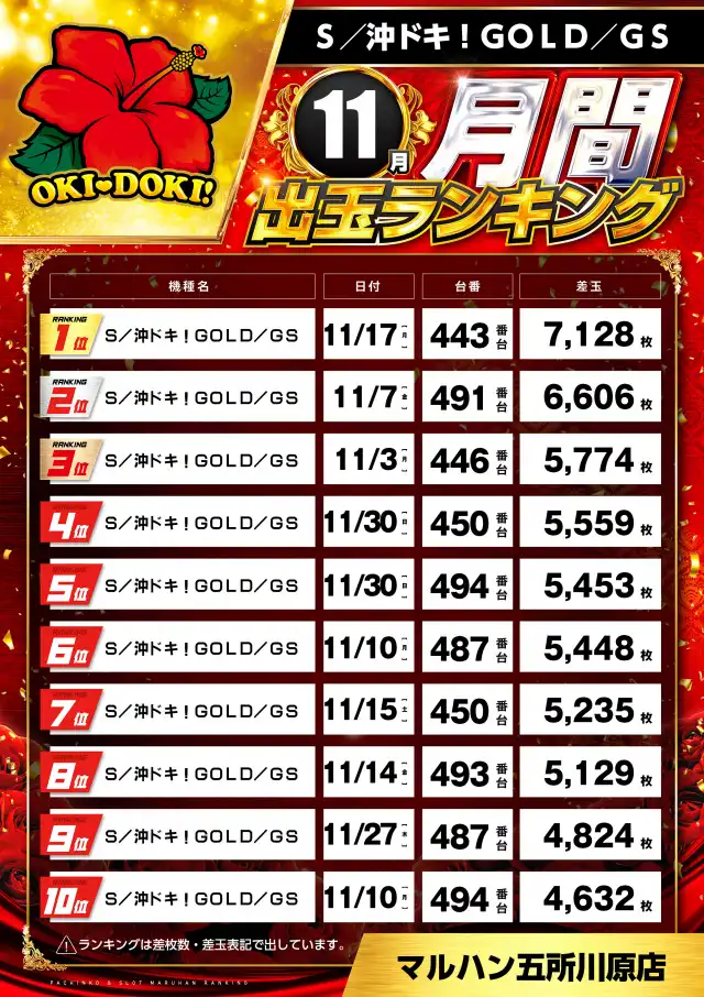 | 稼働台数 | パチンコ432台 / パチスロ144台 |