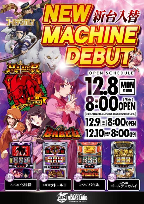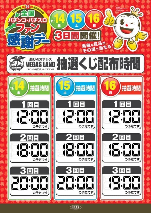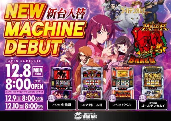 | 営業時間 | 08:00 ~ 24:00(定休日:新台入替等で営業時間変更の可能性あり) 年中無休 8:00~24:00 ※遊技終了23:45 |