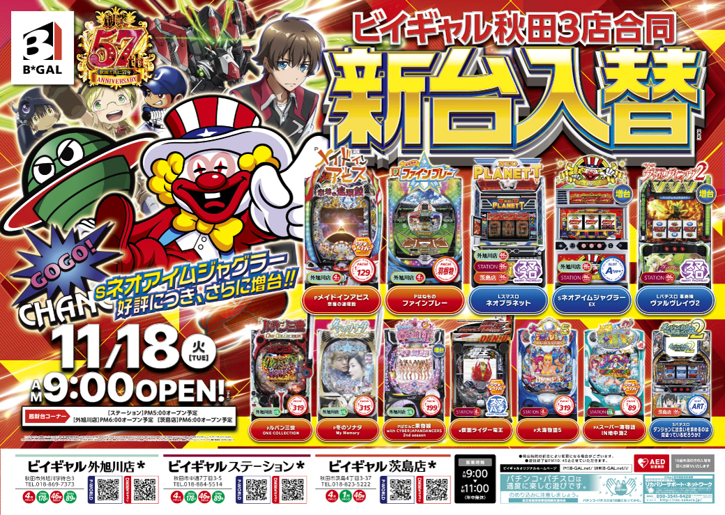 | 稼働台数 | パチンコ254台 / パチスロ128台 |