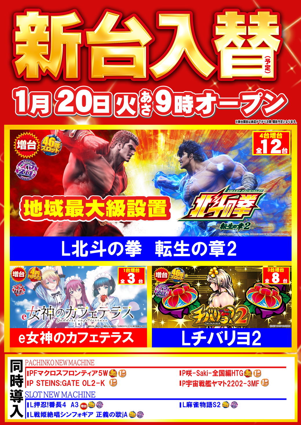 | 稼働台数 | パチンコ482台 / パチスロ319台 |