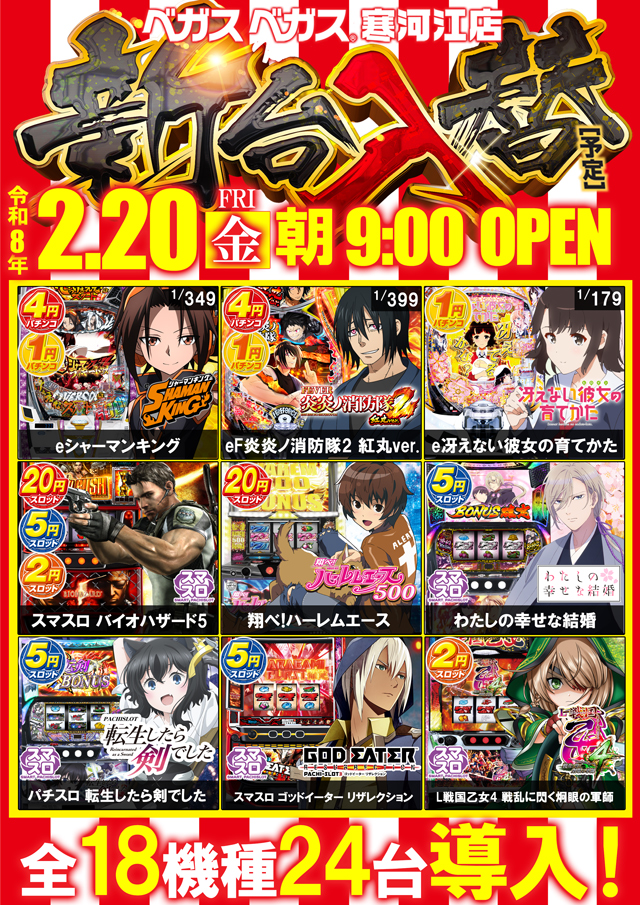 | 稼働台数 | パチンコ354台 / パチスロ197台 |