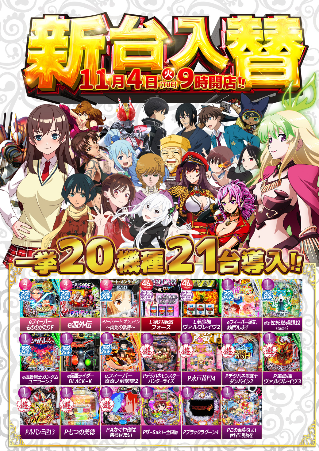 | 稼働台数 | パチンコ192台 / パチスロ128台 |