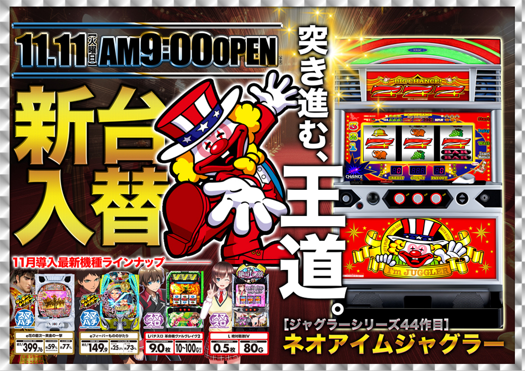 | 稼働台数 | パチンコ440台 / パチスロ320台 |