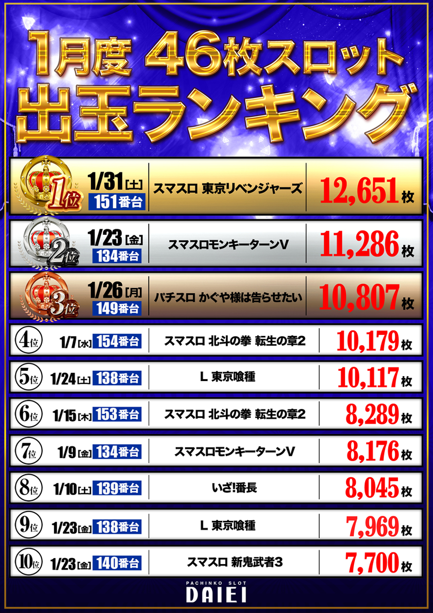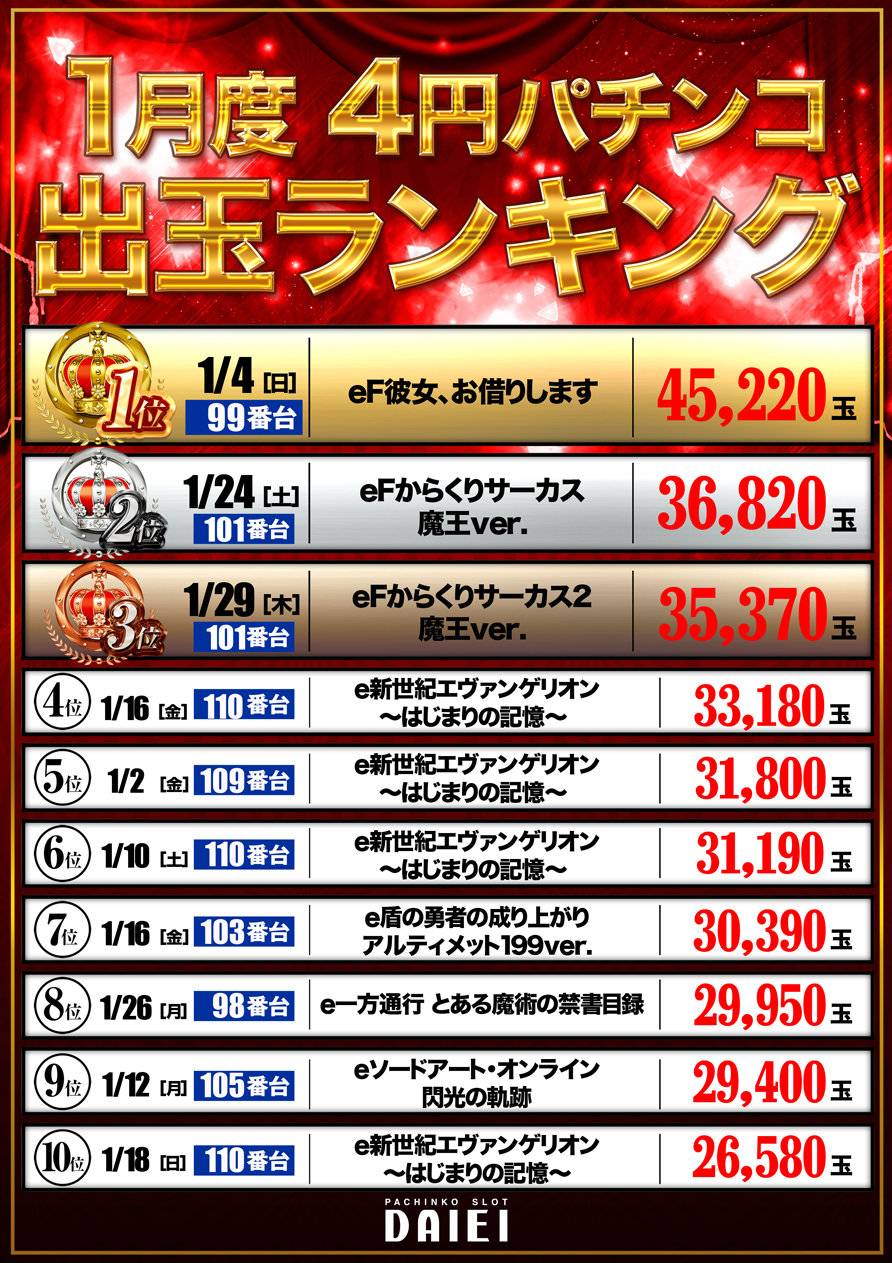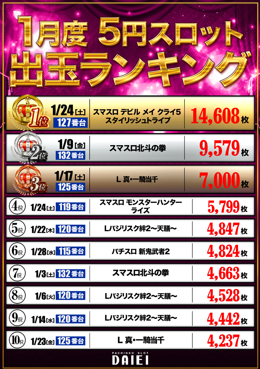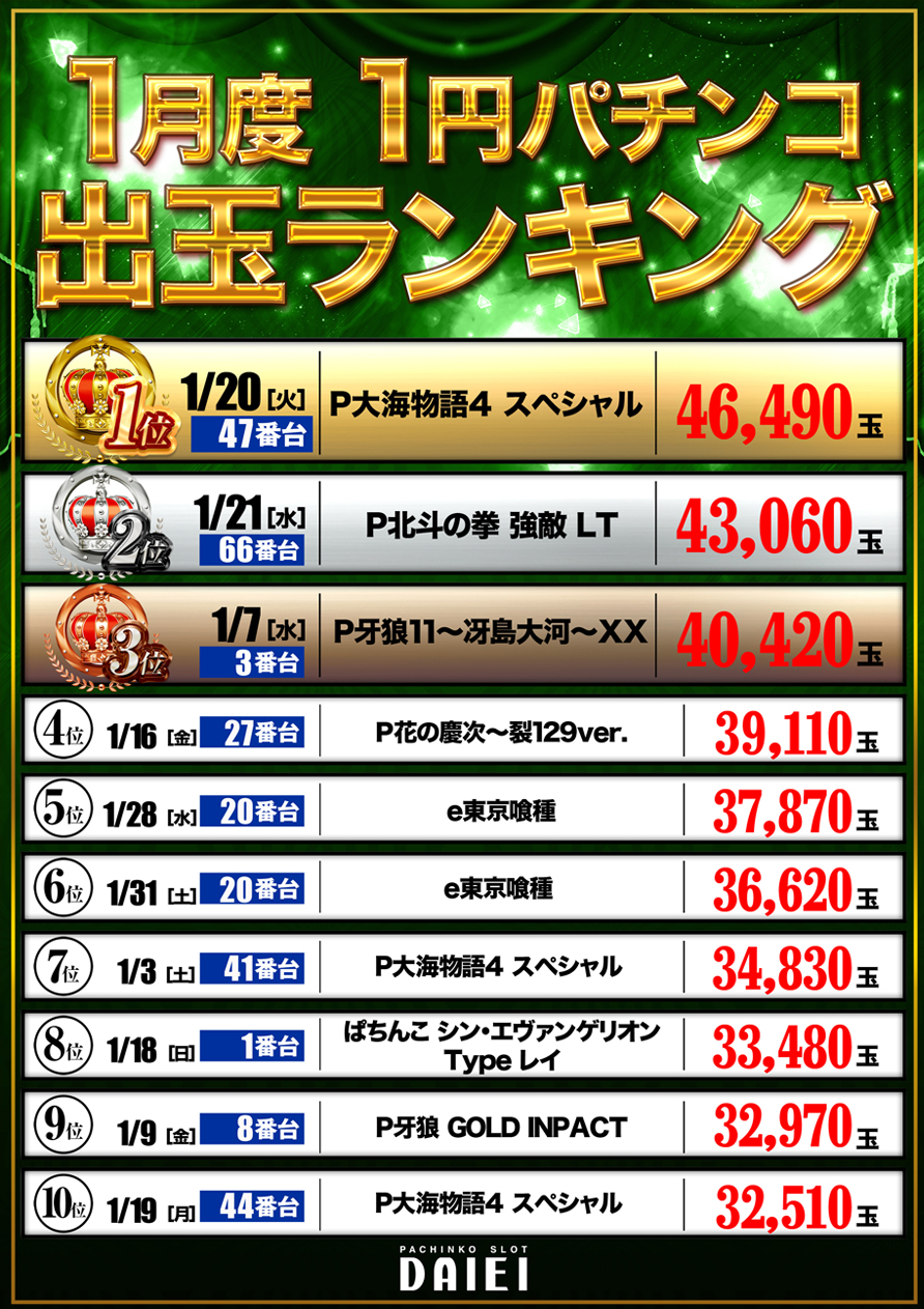 | 稼働台数 | パチンコ110台 / パチスロ86台 |