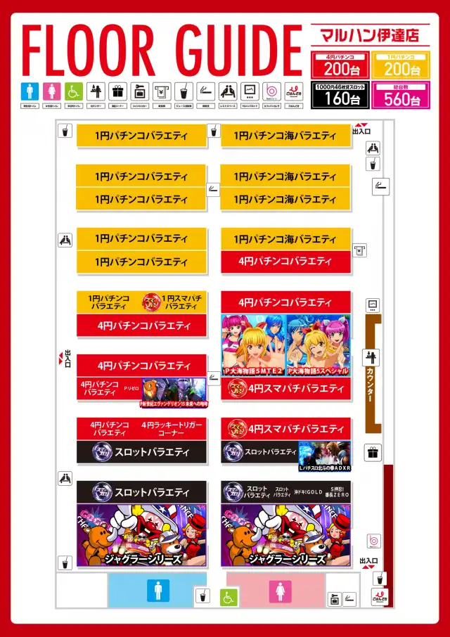 | 稼働台数 | パチンコ400台 / パチスロ160台 |