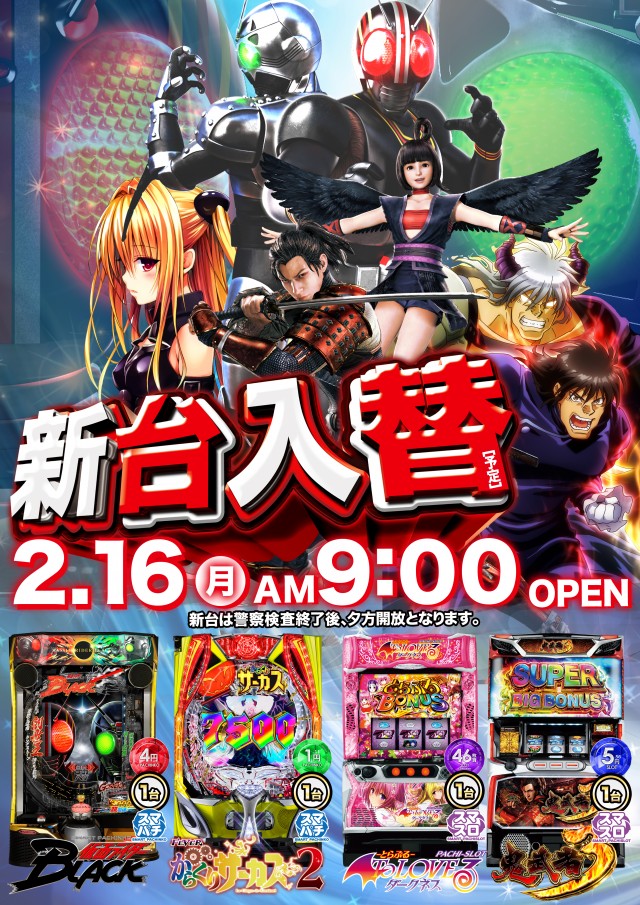 | 稼働台数 | パチンコ264台 / パチスロ66台 |